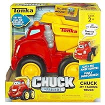 Your toddler will have loads of dump-truck fun with Playskool's Chuck My Talking Truck. Not only does Chuck have over 40 spoken phrases and sounds, he also drives to you when called and shakes his bumper and dump bed while chatting and "working." Designed for children ages two and up, Chuck My Talking Truck offers your child interactive fun and role-playing opportunities.